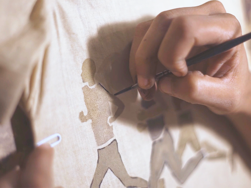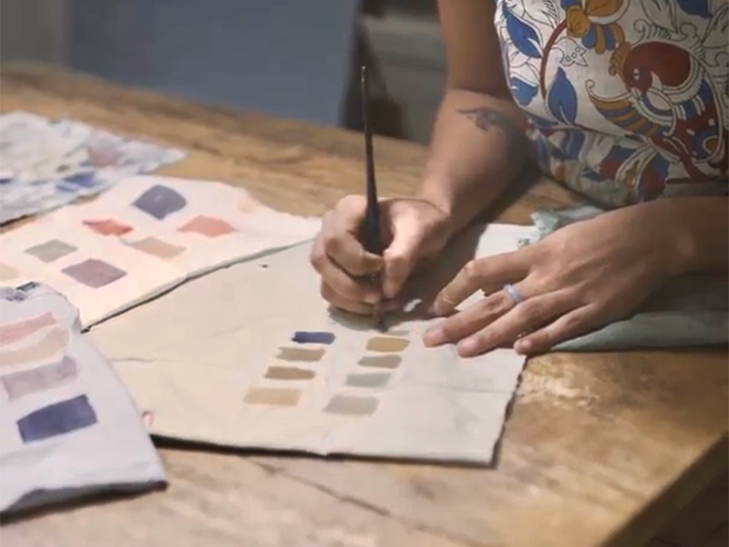 Before we begin painting on our fabrics, a meticulous swatch testing is conducted to close in on our colour pairings and to ensure the compatibility of the paint with the material.